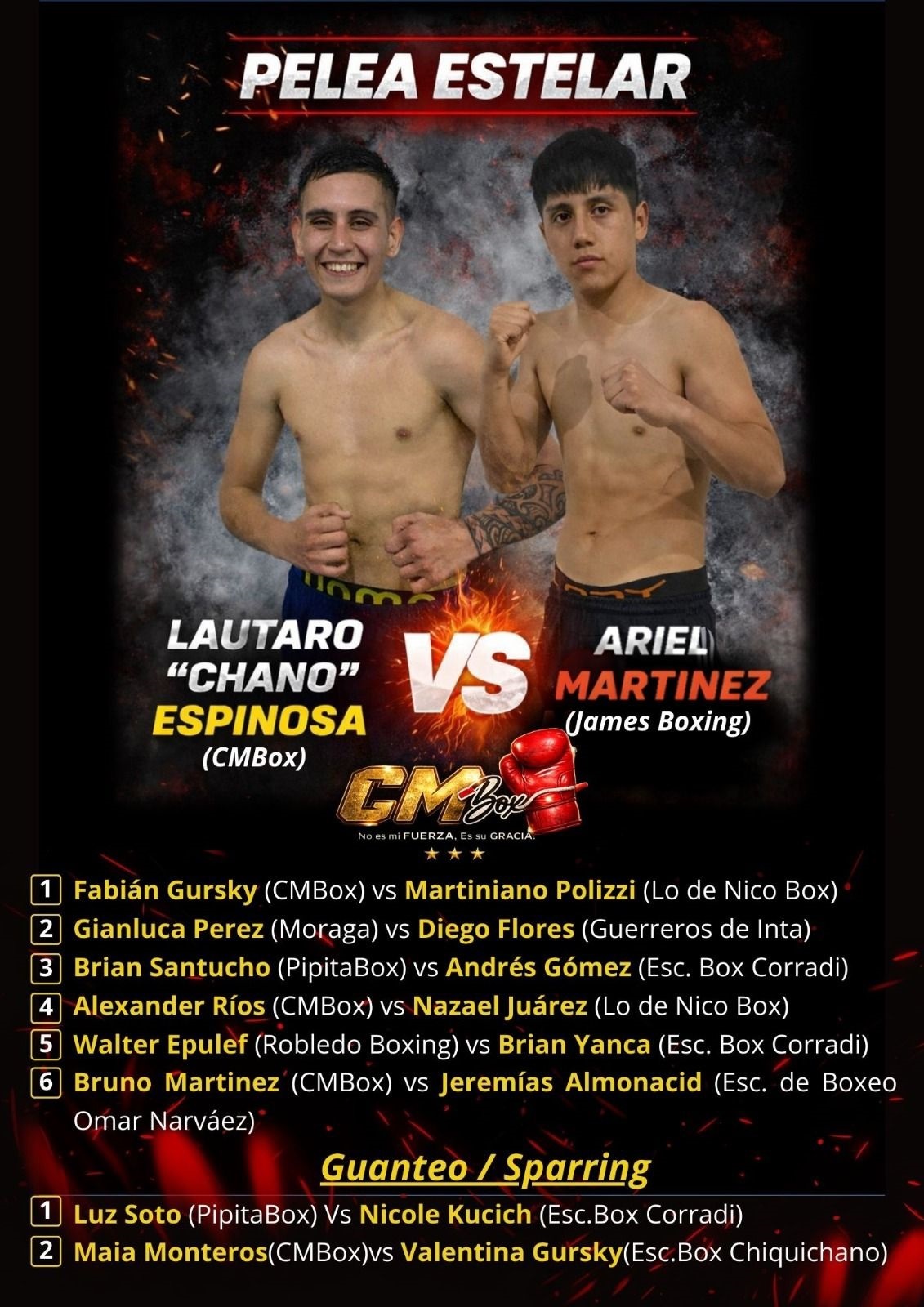 Lautaro “Chano” Espinoza y el dolavense Ariel Martínez protagonizarán el combate de fondo, eventualmente a 4 rounds de 2x1.