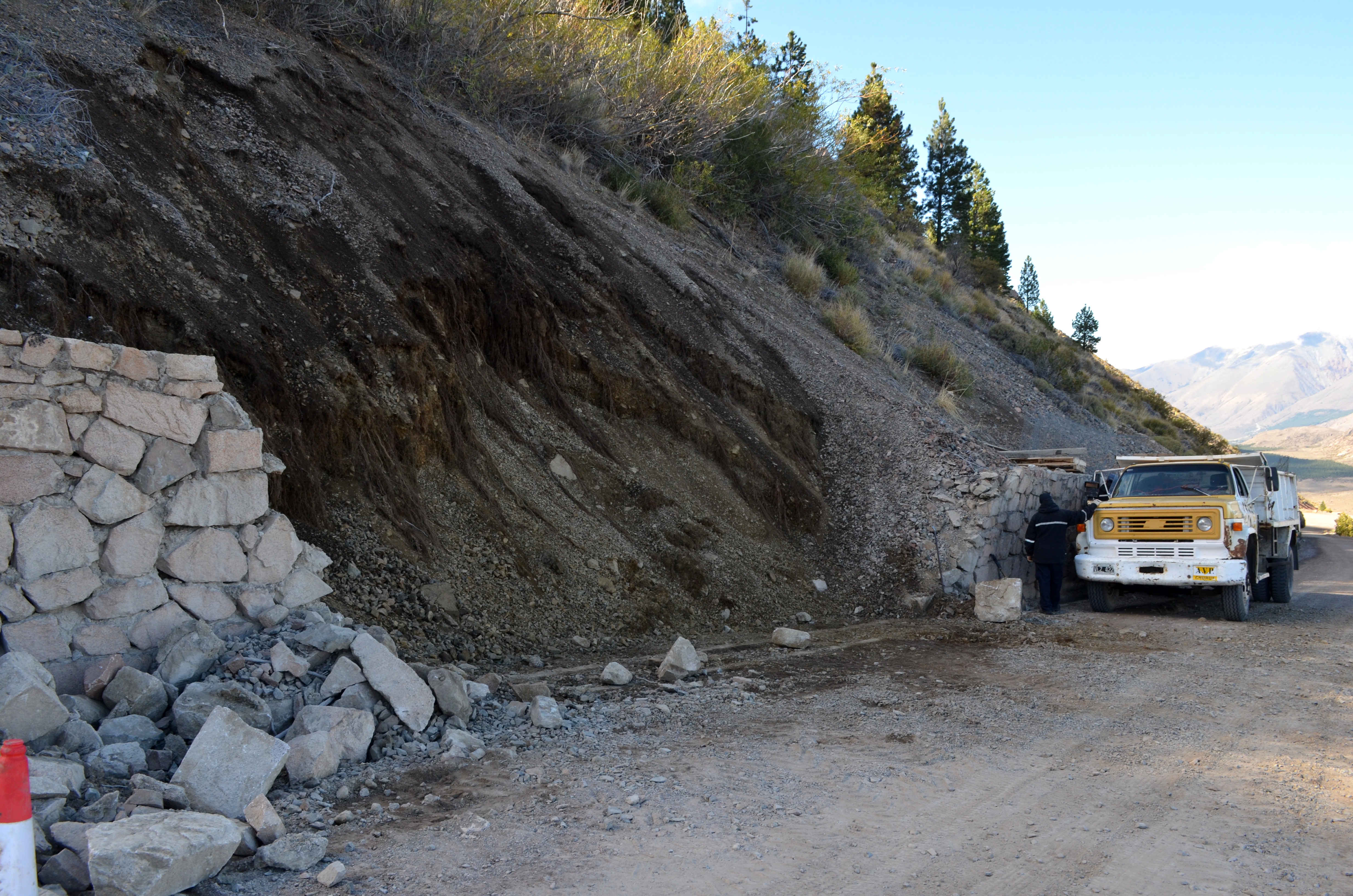 Equipos y personal del organismo vial despejan el camino y construirán gaviones de contención, para garantizar la seguridad de vecinos y turistas que transitan la ruta.