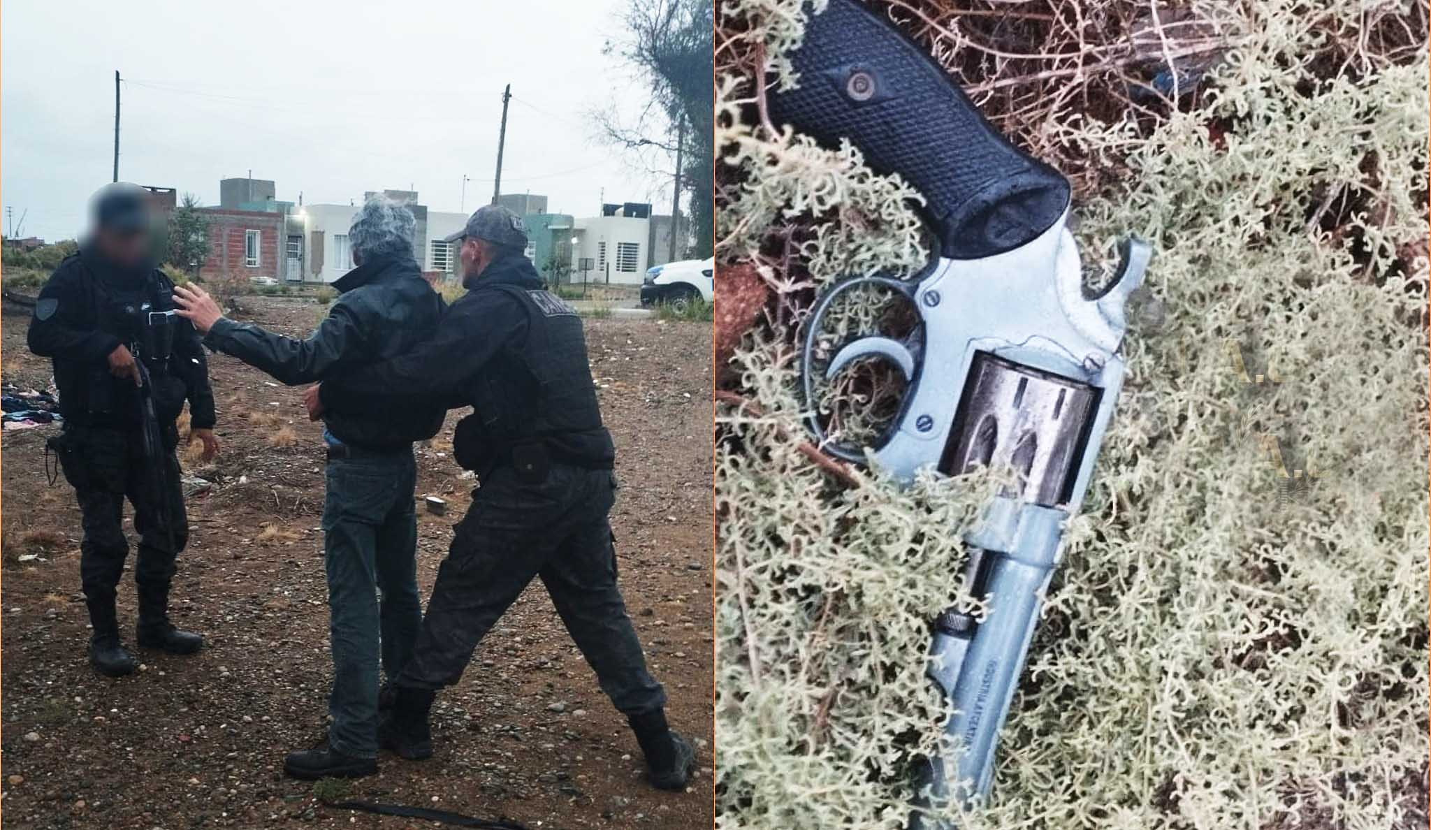 Inmediatamente, se procedió a su demora, realizando en el lugar, un palpado superficial comprobándose que portaba un revólver en su cintura debajo de sus prendas.