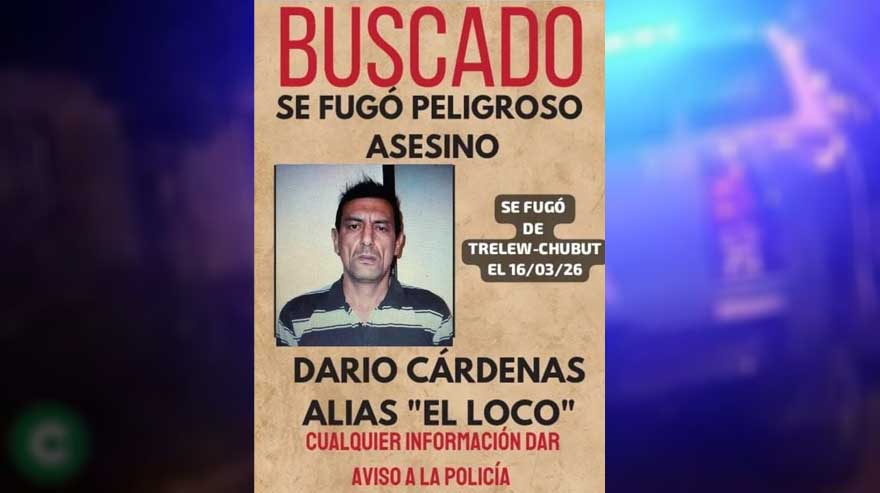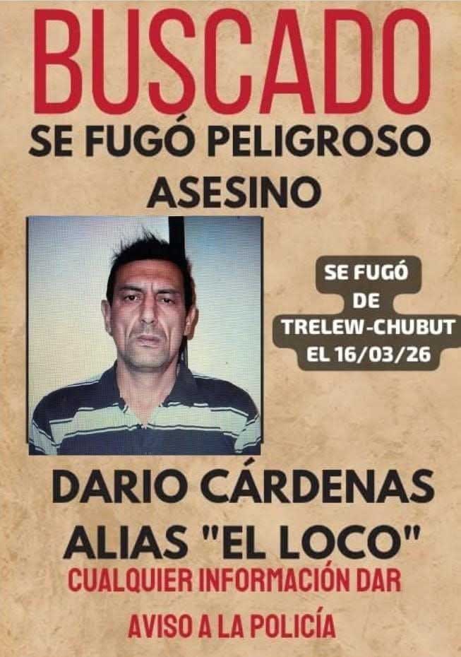 A once días de la espectacular fuga de "El Loco" Cárdenas desde una clínica de Trelew, las autoridades suponen que el peligroso recluso habría abandonado la provincia de Chubut y se encuentra en territorio bonaerense, donde la policía local lo busca en coordinación con las fuerzas de seguridad de esta región.