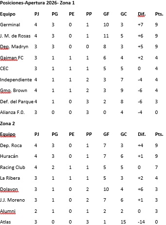 Por la cuarta fecha del Torneo Apertura 2026, Club Alumni venció como local 2-1 a J.J. Moreno y logró el primer triunfo en el certamen.