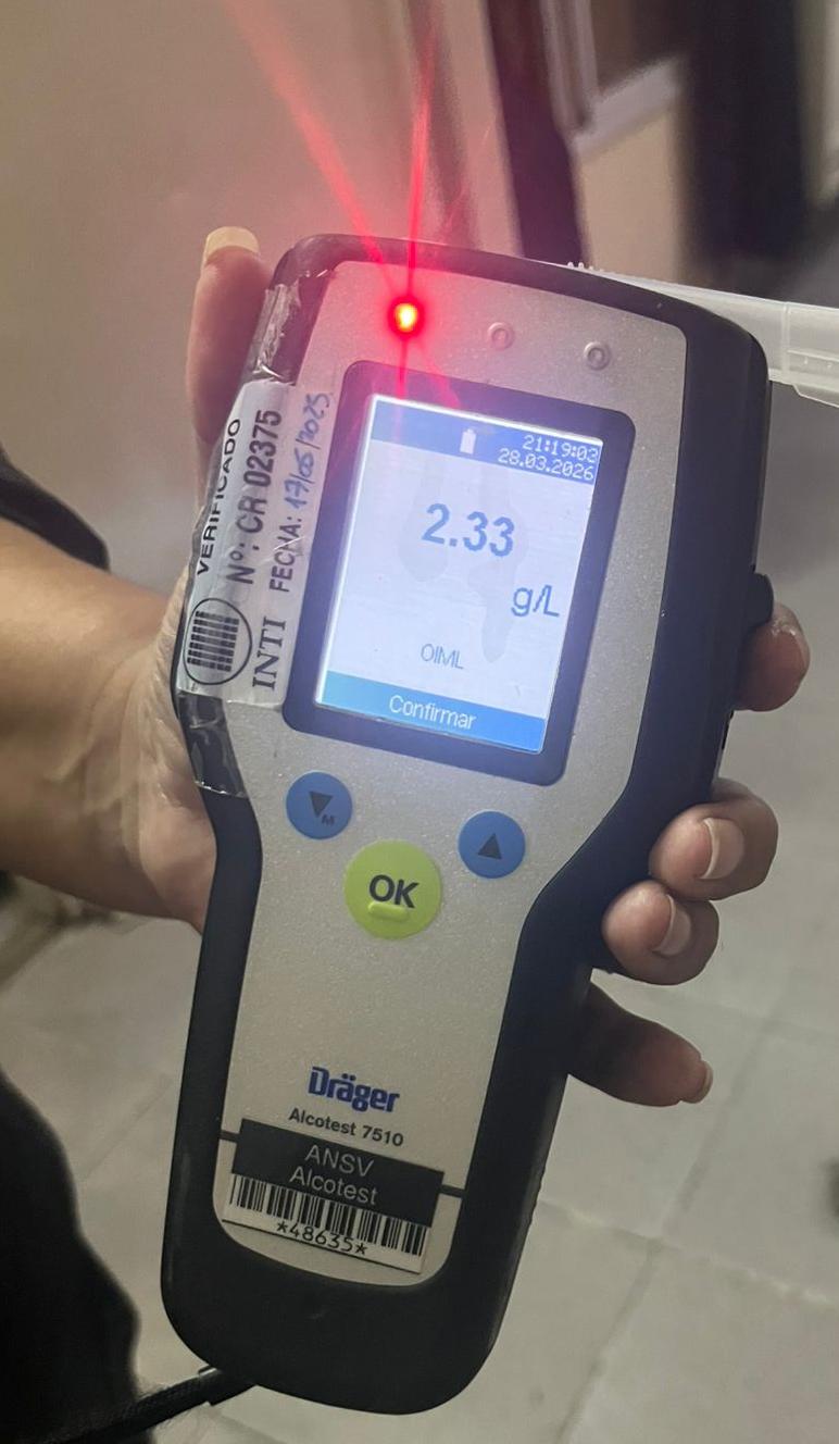 El test de alcoholemia del expolicía arrojó como resultado 2,33 g/l de alcohol en sangre. Su vehículo quedó retenido a disposición del Tribunal de Faltas.