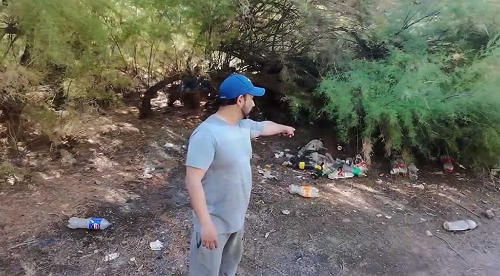 Botellas de plásticos, de vidrio, pañales, bolsas de nylon, latas, y papel higiénico con materia fecal, son algunas de las asquerosidades que se encuentran en ese lugar sumado al tufo que se levanta que hace imposible estar a la sombra.