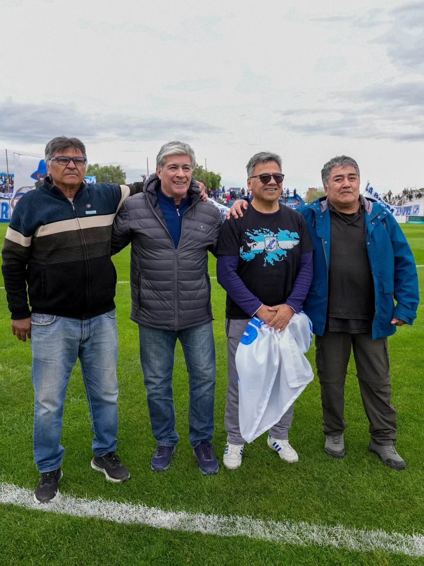 Durante el reconocimiento, los excombatientes ingresaron al campo de juego. Julio Calvo, Julio Rosales, José Luis Endara y Guillermo Huircapán recibieron el reconocimiento del público. También integran el grupo Mario Radonich y Eduardo Bonazzola, quienes defendieron nuestra soberania y nuestra patria en la guerra.