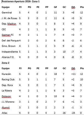 15:30hs Guillermo Brown vs. Germinal Cancha: auxiliarde Guillermo Brown.