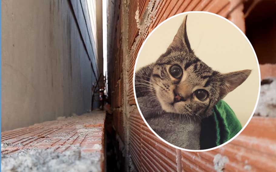 En la tarde del martes una dotación de bomberos voluntarios de Rawson, intervino en el rescate de un gato que había caído entre dos paredones de viviendas lindantes en la villa de Playa Unión.