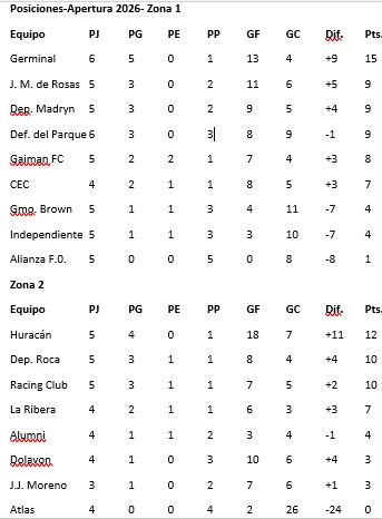 Por la Zona 1, a las 16:30, Juan Manuel de Rosas jugará ante CEC. Por la Zona 2, a las 15, J.J. Moreno será local de La Ribera. Y una hora más tarde, Racing jugará ante Atlas.