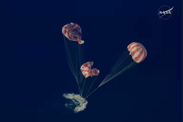 Si uno de ellos fallara, la nave puede amerizar con dos, aunque el impacto sería considerablemente más violento para la tripulación. El objetivo es que la cápsula toque el océano a una velocidad cercana a los 32 kilómetros por hora. El amerizaje puede producirse en distintas posiciones -vertical, lateral o incluso invertida-, por lo que se inflarán airbags de color naranja para estabilizar la nave y permitir una salida segura.#