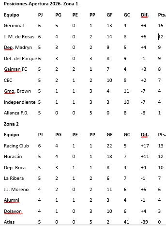 Del 5 al 8 de cada zona, acceden a la Copa de Plata.