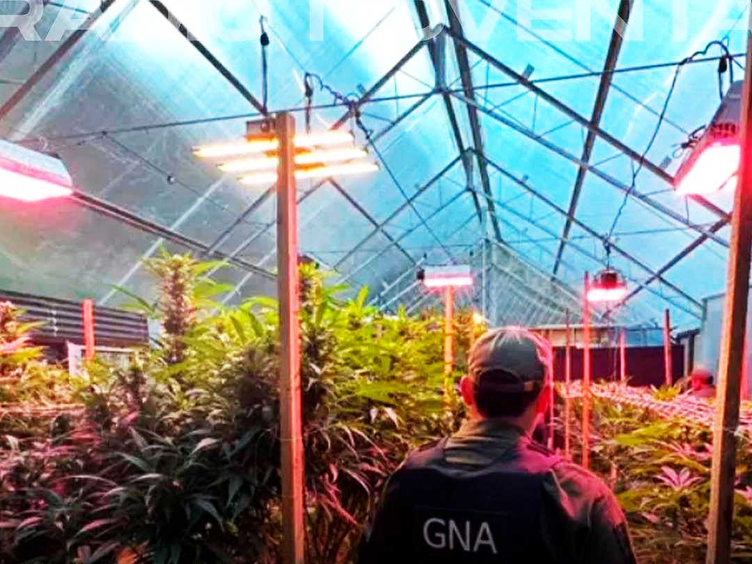 El procedimiento fue el resultado de una investigación iniciada en enero por el Escuadrón 34, que derivó en seis allanamientos en el barrio Valle Escondido, sobre la avenida Bustillo. En uno de los domicilios, los efectivos encontraron un invernadero preparado con sistemas de iluminación, ventilación, crecimiento y secado de plantas.