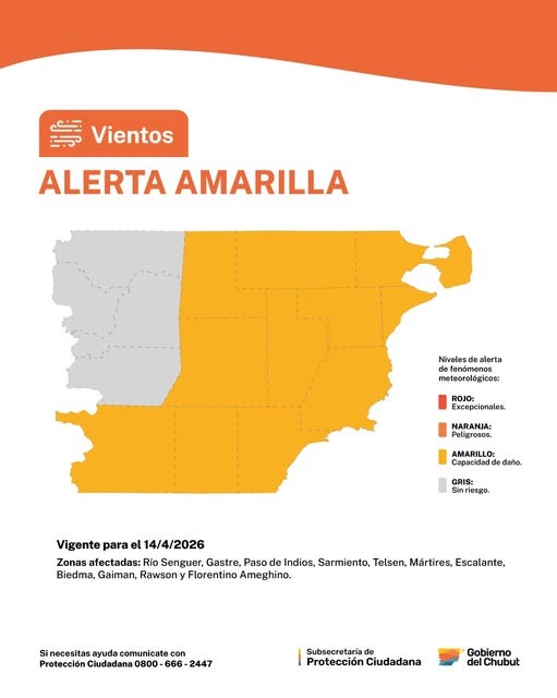 La Secretaría de Protección Ciudadana emitió este lunes, “alerta amarilla” por vientos prevista para la madrugada-mediodía del martes 14 de abril.