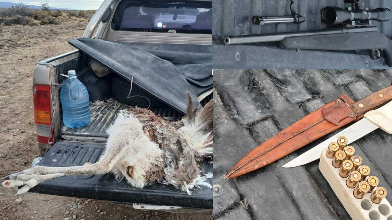 Al arribar al lugar, el personal de la División Seguridad Rural pudo comprobar que en una Toyota Hilux había sobre la caja, un Choique o ñandú petiso, ave protegida en la provincia.