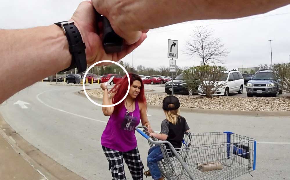 Tras recibir la llamada al 911, la policía llegó a las afueras de la tienda y detectó a la sospechosa con el niño sentado en un carro de compras. Tras la orden de que bajara el arma, que no fue obedecida, la mujer comenzó a atacar al niño con el cuchillo. En este marco, los agentes —uno de ellos el que llevaba la cámara en su pecho— dispararon varias veces hasta reducirla. La atacante, finalmente, murió en el lugar.