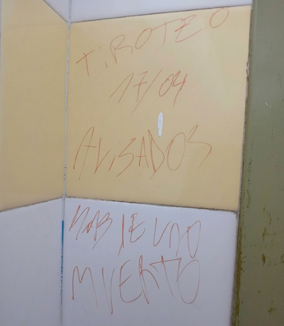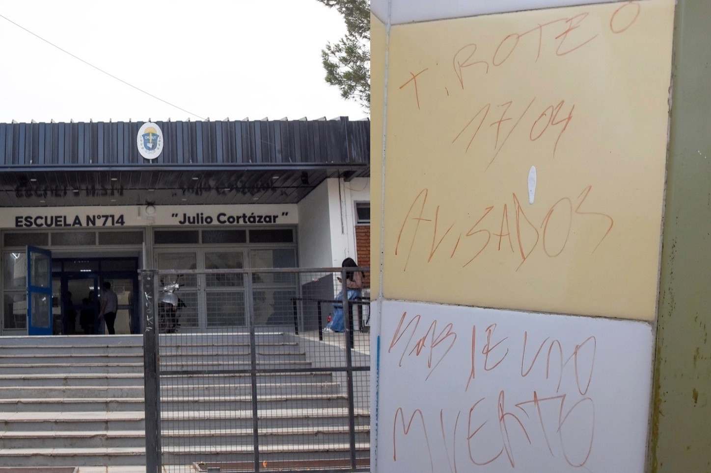 Este jueves por la mañana, en la Escuela N° 714 de Trelew, se descubrió un mensaje escrito en el baño de varones que generó alarma en la comunidad educativa. El texto decía: “Tiroteo, 17/04, avisados”, y debajo se leía: “Más de uno muerto”.
