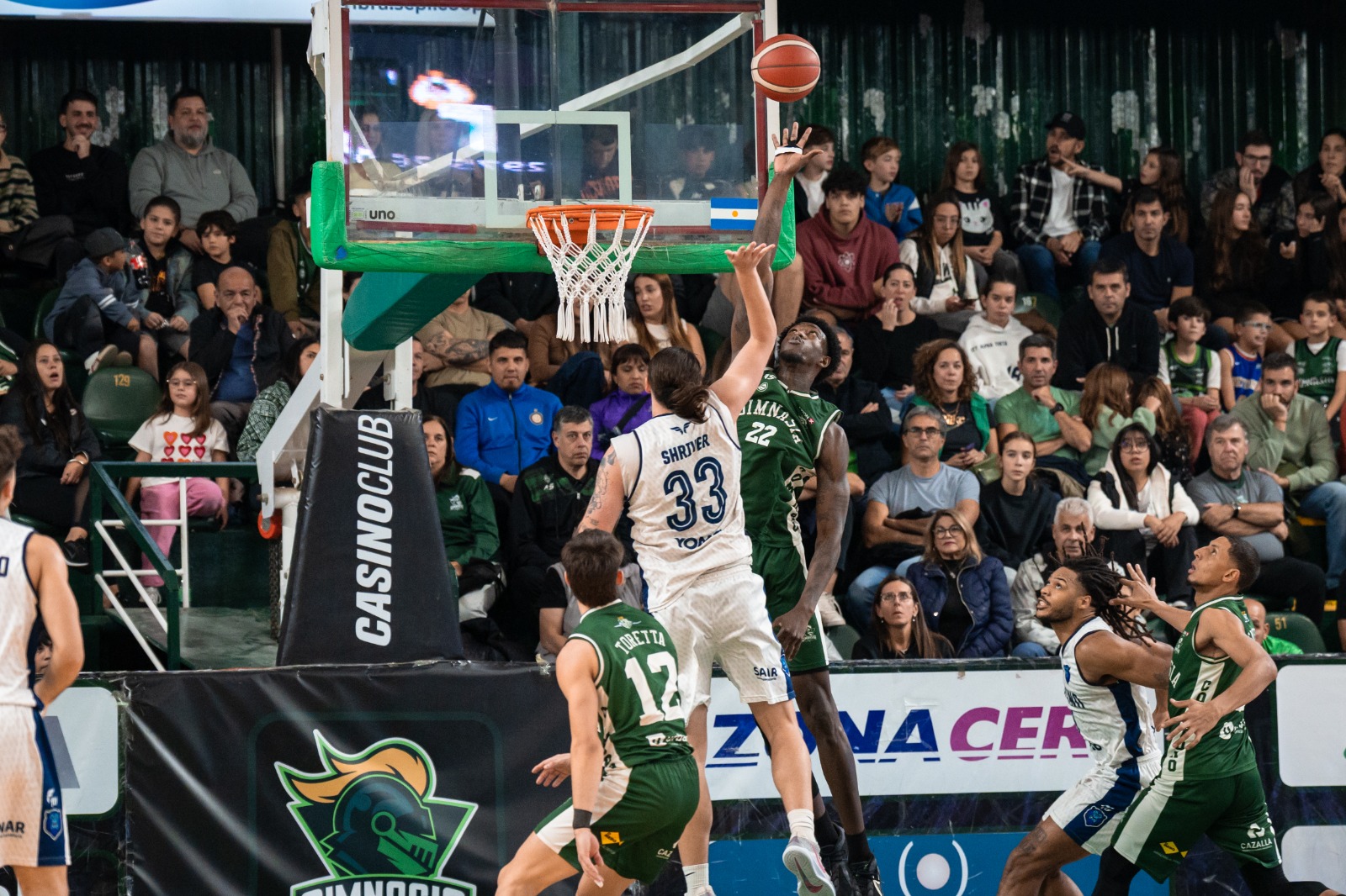 El primer cuarto finalizó 28-16. En el segundo periodo, el conjunto patagonico siguió estirando su ventaja con el ingreso de Sebastian Carrasco y Mauro Cosolito, además del aporte de Carlos Rivero en la pintura, pero Argentino con Bastian y un triple de Santiago Bilbao, achicó la diferencia a doce puntos (44-32). En el final del cuarto, Gimnasia nuevamente se alejó en el marcador para irse al descanso por 52-39.
