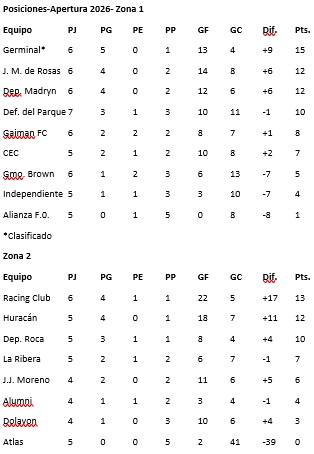 16.00 hs - Deportivo Roca vs. J.J. Moreno. Cancha: Deportivo Roca. Árbitro: Ariel Murillo.