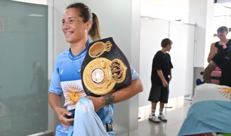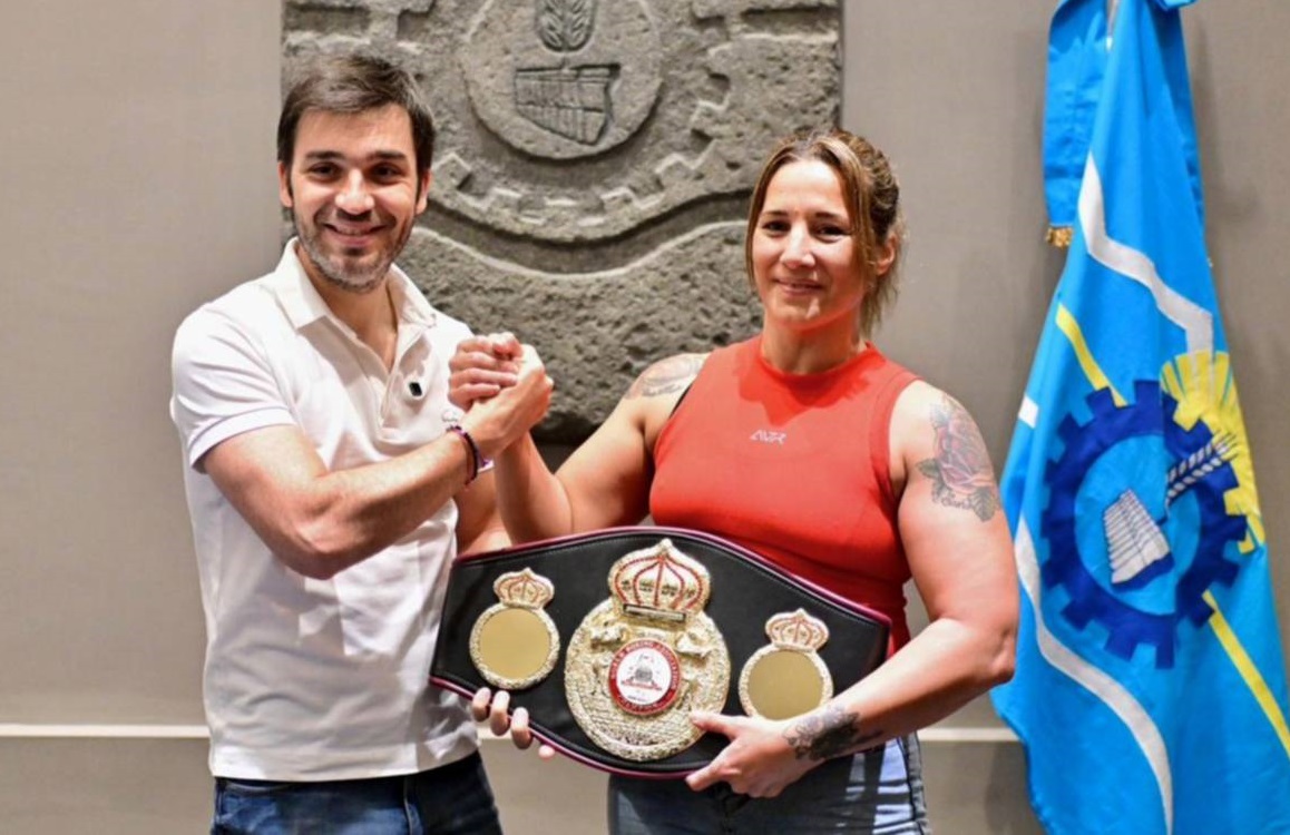 “Como se lo había prometido a toda la gente y al Gobernador que iba a volver a ser campeona, le llevé el título y me propuso la posibilidad de poder defenderlo acá”, recordó “La Itaka” respecto del encuentro y posterior anuncio de “Nacho” Torres, el mandatario chubutense.