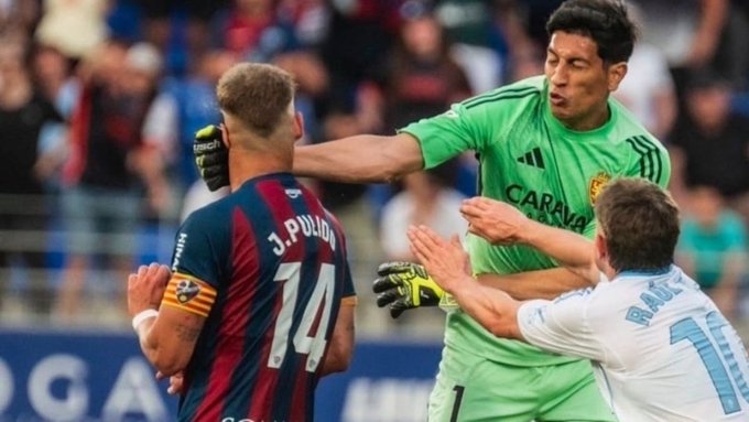 El arquero argentino Esteban Andrada generó un escándalo en la Segunda División del fútbol español, luego de dar un puñetazo al capitán rival al cierre del “derbi aragonés” entre Real Zaragoza y Huesca.