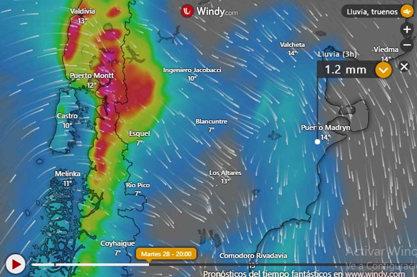 Un frente frío proveniente del sudoeste traerá fuertes lluvias para la Cordillera chubutense y precipitaciones de variada intensidad en la meseta y el Valle para este martes 28 de abril.