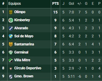 Olimpo venció por 1-0 a Círculo Deportivo, en el cierre de la fecha 6 de la Zona 4. El partido se postergó para este lunes por alerta climática. El "Aurinegro" es líder con puntaje perfecto.